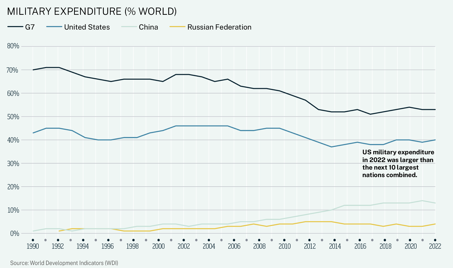 In 1990, the G7 industrialized countries controlled about two-thirds of world GDP and all the rules, institutions, and systems that went with it, with the US as leader. Fast forward to 2022, and the G7’s share of global GDP had plummeted to just 44%. While the US share has held steady at around 25%, other G7 members saw their GDP shares drop. Meanwhile, China experienced a miraculous rise from 2% to 17%. While impressive, this isn’t enough for dominance. Even when China eventually surpasses the US economy, it won’t achieve the dominance the G7 once enjoyed. For starters, it doesn’t have a coalition of massive economies following its lead.