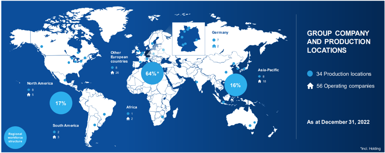 FUCHS SE, headquartered in Mannheim, Germany, specializes in high-efficiency lubricants and functional fluids. By the end of 2023, it was generating annual revenues of €3.5bn, with 75% international. FUCHS offers over 10,000 products across various downstream segments, making it a global full-line provider of lubrication solutions that enhance manufacturing processes and reduce wear and friction. With 56 subsidiaries and 11 equity-consolidated companies in three geographical regions: EMEA, Asia-Pacific, and North and South America, FUCHS usually manages its business through local subsidiaries and regional managers, blending global solutions with local market specifics.