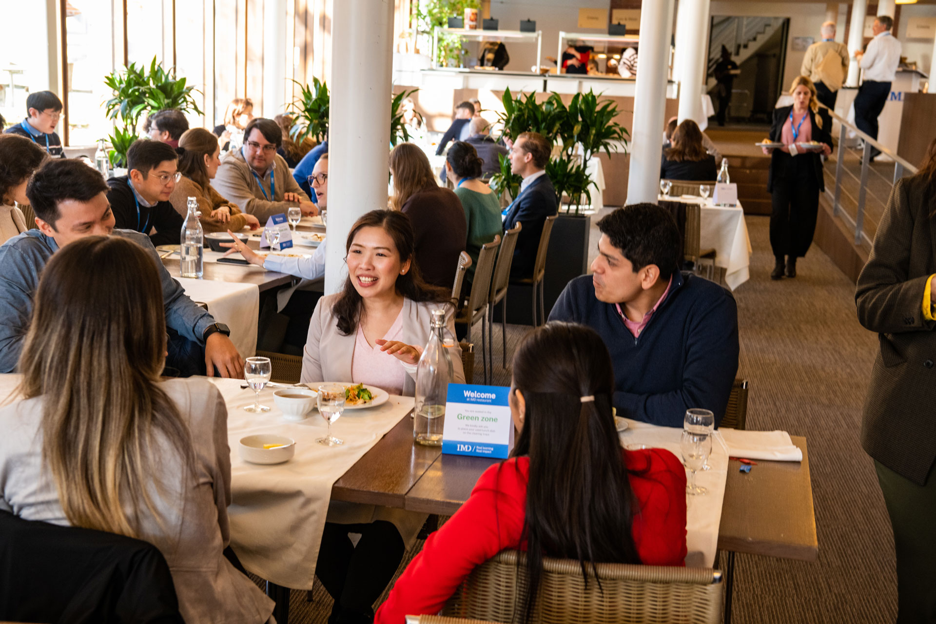 The IMD restaurant, located on our Lausanne campus, caters to program participants and employees, providing them with healthy food daily. The menu revolves around healthy ingredients sourced from local and regional areas from Bio-Swiss-certified suppliers. The varied menu includes plant-based meat alternatives. By serving more plant-based meals, the restaurant actively contributes to reducing greenhouse gas emissions at source.